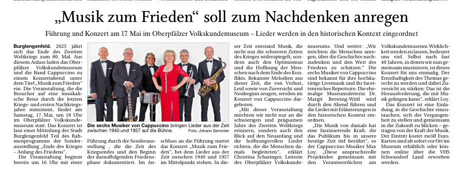 17.05. „Musik zum Frieden“ - Konzert zur Ausstellung „80 Jahre Kriegsende“